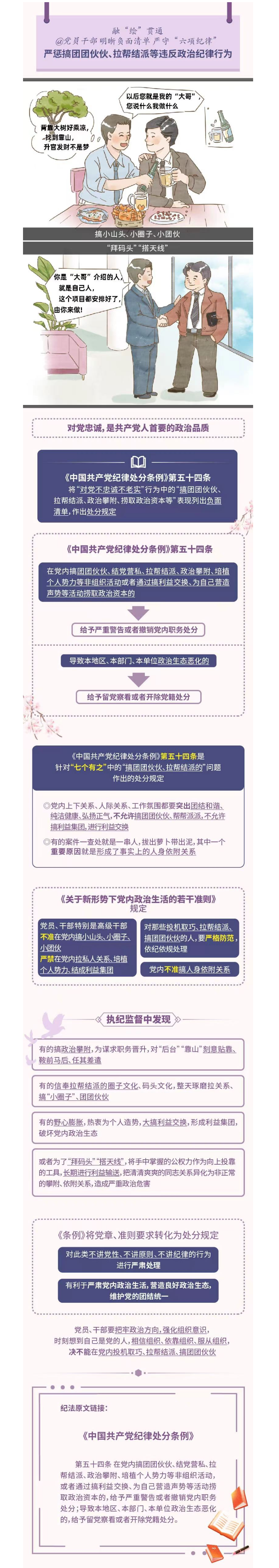 【學(xué)條例 守黨紀】融“繪”貫通|“拜碼頭”“搭天線”…嚴懲搞團團伙伙、拉幫結(jié)派等違反政治紀律行為