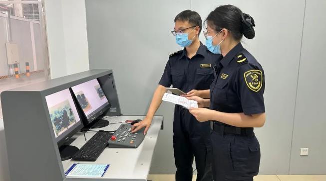 8月2日,中國鄭州機(jī)場海關(guān)關(guān)員用X光機(jī)對進(jìn)口貨物開展非侵入式查驗。新華社發(fā)(鄭州機(jī)場海關(guān)供圖)