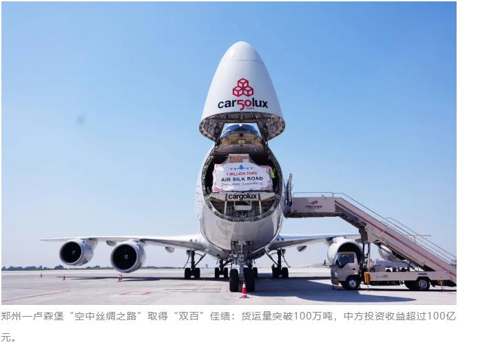 2014年1月,河南航投收購盧森堡貨航35%股權(quán)簽約儀式在鄭州舉行。同年6月,首條鄭州—盧森堡國際貨運航線開通,同年11月,盧森堡貨航鄭州航線貨運量就突破1萬噸;2015年11月,貨運量累計突破5萬噸,國際貨運量、國際貨運航線數(shù)、航班數(shù)量、國際通航點等主要指標(biāo)躍居鄭州機(jī)場首位;2016年6月,累計貨運量突破10萬噸;2019年5月,50萬噸;2021年8月,80萬噸,2023年6月突破100萬噸。