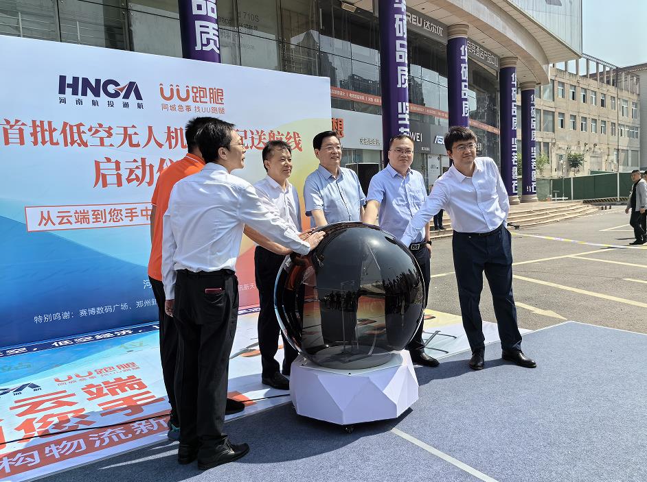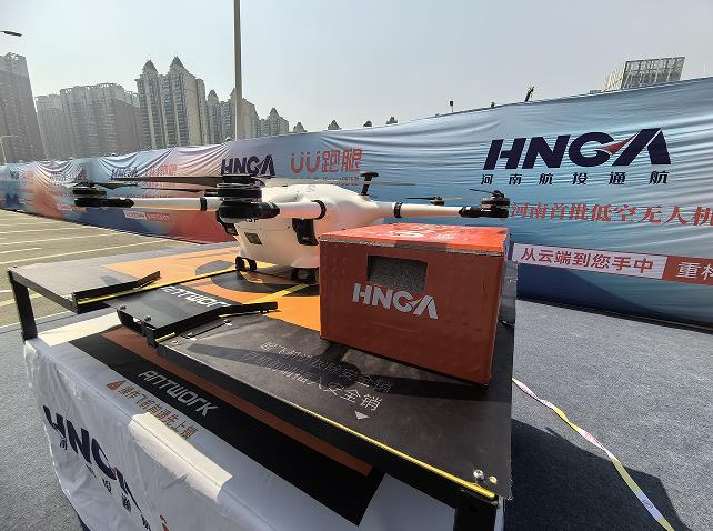 5月18日上午10時(shí)許,一架物流無人機(jī)從河南科技市場(chǎng)數(shù)碼港垂直升空,12分鐘后按既定路線平穩(wěn)降落在新天地通訊大廈,河南首條低空無人機(jī)物流配送航線成功首飛。