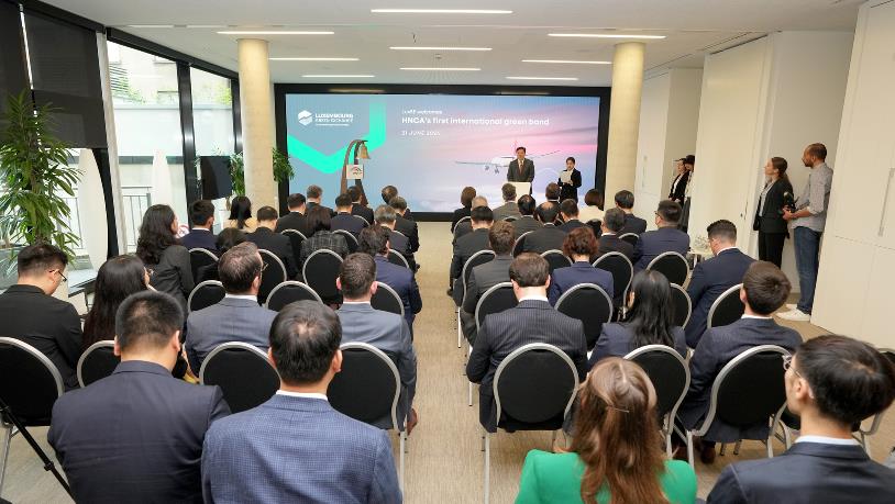 當(dāng)?shù)貢r間6月21日上午,中豫航空集團(tuán)以河南航投為主體發(fā)行的3年期人民幣境外債券上市儀式在盧森堡證券交易所舉行。這是中國企業(yè)在歐洲發(fā)行的首只支持可持續(xù)航空燃料(SAF)的綠色債券,也是河南企業(yè)發(fā)行的首只離岸人民幣綠色債券,鄭盧“空中絲路”資金融通實(shí)現(xiàn)新突破。