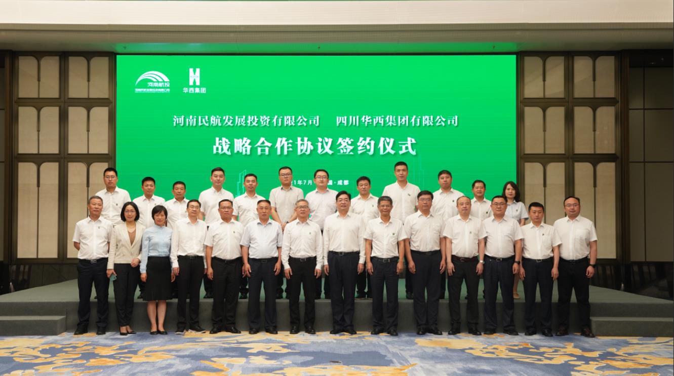 7月16日,河南民航發(fā)展投資有限公司(簡(jiǎn)稱河南航投)與四川華西集團(tuán)有限公司(簡(jiǎn)稱四川華西)在成都舉行了簡(jiǎn)短而熱烈的簽約儀式,兩家跨省國(guó)企約定,在民航產(chǎn)業(yè)展開全面合作。河南航投黨委書記、董事長(zhǎng)張明超,黨委副書記、總經(jīng)理、副董事長(zhǎng)劉建葆,四川華西黨委書記、董事長(zhǎng)楊斌,黨委副書記、總經(jīng)理、副董事長(zhǎng)馬林出席。張明超、楊斌分別致辭,劉建葆、馬林代表雙方簽訂《戰(zhàn)略合作協(xié)議》,河南航投基礎(chǔ)產(chǎn)業(yè)公司董事長(zhǎng)趙楠和貴州場(chǎng)道公司執(zhí)行董事劉國(guó)呈代表子公司簽訂《合資合作協(xié)議》。