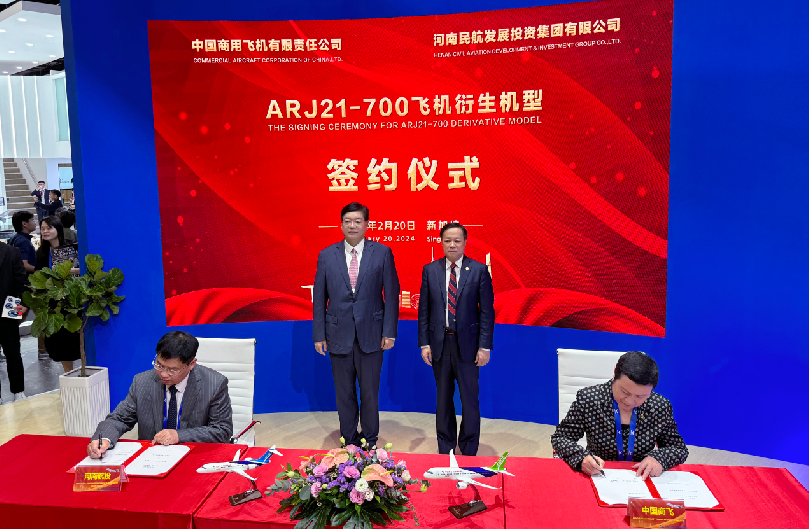 2月20日,在中國商用飛機有限責(zé)任公司(以下簡稱中國商飛)黨委書記、董事長賀東風(fēng)和河南航投集團黨委書記、董事長張明超的共同見證下,河南航投集團子公司河南航投航空設(shè)備租賃有限公司(以下簡稱航投租賃)與中國商飛在新加坡航展首日簽署了《飛機購買意向書》(以下簡稱意向書),雙方就國產(chǎn)ARJ21-700衍生機型達成購買意向。
