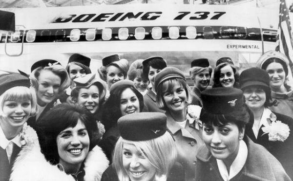 圖:1967年1月,17家已經(jīng)訂購(gòu)了737飛機(jī)的航空公司空姐在第一架737飛機(jī)前合影。圖片來自美聯(lián)社