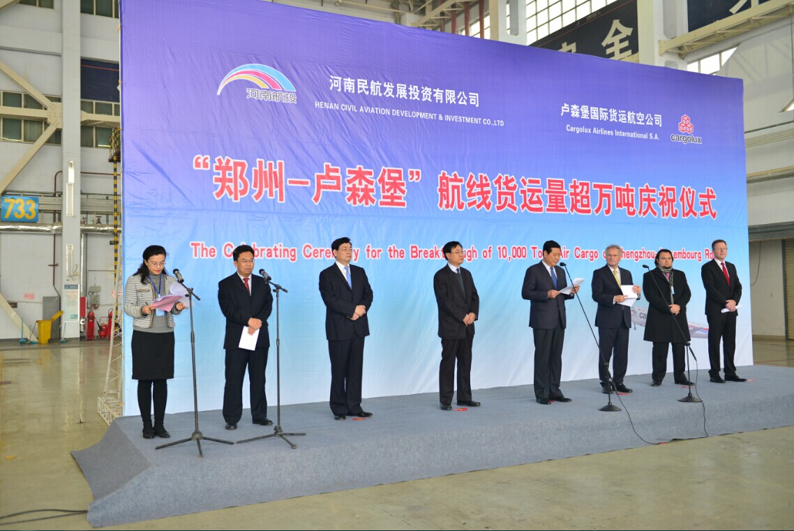 河南省副省長(zhǎng)趙建才參加儀式并致辭,他指出,“鄭州-盧森堡”國(guó)際貨運(yùn)航線架起了橫貫中歐大陸的“空中絲綢之路”?!耙宦凤w跨中歐,天塹變通途”,截至今日,該航線累計(jì)貨運(yùn)量已突破萬(wàn)噸,為鄭州國(guó)際機(jī)場(chǎng)貨運(yùn)量的快速提升作出了突出貢獻(xiàn)!這一成績(jī)的取得,是河南省與盧貨航優(yōu)勢(shì)互補(bǔ)、合作共贏的成功典范,更是“雙樞紐”戰(zhàn)略推動(dòng)實(shí)驗(yàn)區(qū)發(fā)展的生動(dòng)實(shí)踐。當(dāng)前,鄭州航空港經(jīng)濟(jì)綜合實(shí)驗(yàn)區(qū)發(fā)展態(tài)勢(shì)良好,希望盧貨航與河南航投搶抓實(shí)驗(yàn)區(qū)戰(zhàn)略機(jī)遇,不斷拓寬合作領(lǐng)域,豐富合作內(nèi)容,加快推動(dòng)合資貨航組建和飛機(jī)維修基地建設(shè),積極培育參與國(guó)際分工合作新優(yōu)勢(shì),努力促進(jìn)鄭州與盧森堡乃至歐亞之間的經(jīng)貿(mào)合作和人文交流,為建設(shè)鄭州航空港經(jīng)濟(jì)綜合實(shí)驗(yàn)區(qū)做出新的更大的貢獻(xiàn)。