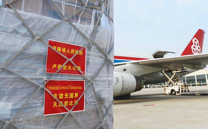 2020年2月,疫情爆發(fā)初期,盧森堡貨航和河南航投共同積極加入抗“疫”戰(zhàn)斗,除了為中國員工提供口罩、消毒棉片、防護服等物資支援外,還在原定的春節(jié)假期期間,加運了95噸醫(yī)療物資馳援中國抗“疫”一線,并根據(jù)國內(nèi)外市場的需要有序增加運力。當年3月,河南省委、省政府為盧森堡緊急籌措了包括4500件醫(yī)用防護服、50萬只醫(yī)用外科口罩、5700只醫(yī)用N95口罩、10萬雙醫(yī)用手套、600只額溫槍、2萬瓶洗手液、1080副醫(yī)用護目鏡等在內(nèi)的首批醫(yī)療物資,并通過鄭州—盧森堡貨運航班直接運抵盧森堡。鄭盧“空中絲綢之路”被盧森堡政府譽為“盧森堡及其他歐洲地區(qū)的生命線,是一條雪中送炭的空中橋梁?!痹谶@條絲路的連接下,豫盧雙方成為共建共享、休戚與共的“一家人”。