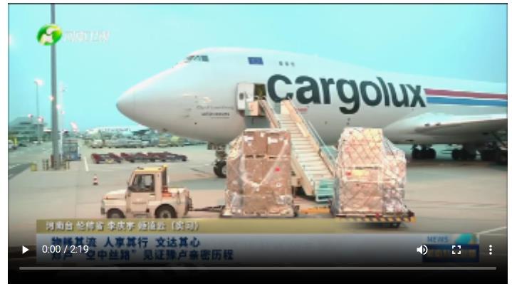 河南航投盧森堡項(xiàng)目管理部總經(jīng)理 史彬彬:這張照片是鄭州-盧森堡空“中絲綢之路”的貨運(yùn)量突破了100萬(wàn)噸,中方的投資收益超過(guò)100億元,實(shí)現(xiàn)了雙百這樣一個(gè)答卷。這張照片是我們當(dāng)時(shí)客運(yùn)航線首飛,盧森堡的駐華大使,他搭乘了這條首飛航線回國(guó)去述職。