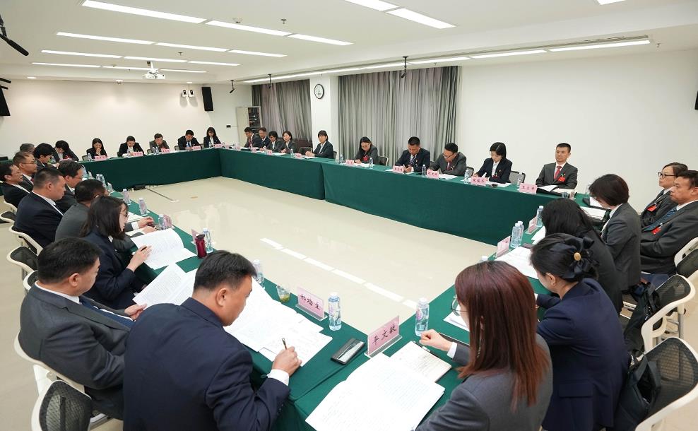 集團(tuán)領(lǐng)導(dǎo)班子成員與代表們討論報(bào)告。