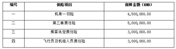1.3本次采購范圍包括:兩架西銳SR-20G6飛機(jī)的機(jī)身一切險、第三者責(zé)任險、乘客法定責(zé)任險(每架飛機(jī)投保2名人員),飛行員及機(jī)組人員責(zé)任險(每架飛機(jī)投保2名人員),每架飛機(jī)保險需求具體情況如下表: